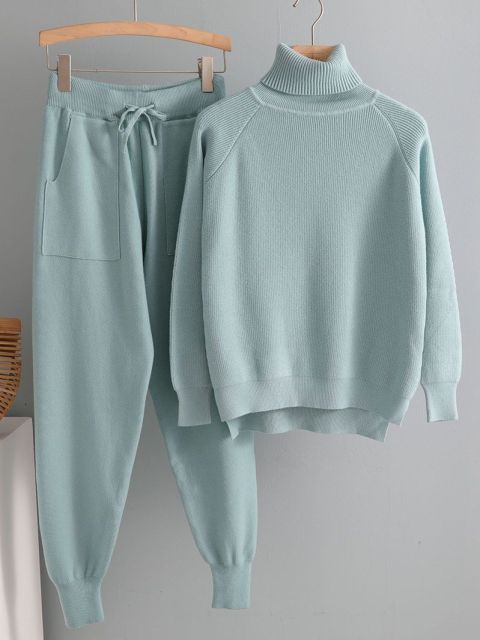 2021 2 Pieces Set Women Knitted Tracksuit Turtleneck Sweater Carrot Jogging Pants Pullover Sweater Set CHIC.jpg 640×640