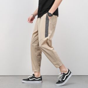 Korean Summer Men S Thin Splicing 9 Point Pants Ice Silk Ventilation Trend Straight Tube Loose