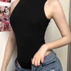 Y2K Summer Sexy Sleeveless Backless Bodycon Skinny Playsuit Bodysuit