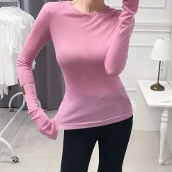 Sexy Slim Fit Long Sleeve T-Shirt for Women – Korean Style Casual Tee