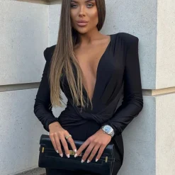 High Neck Long Sleeve Maxi Bodycon Dress – Autumn Party Club Style