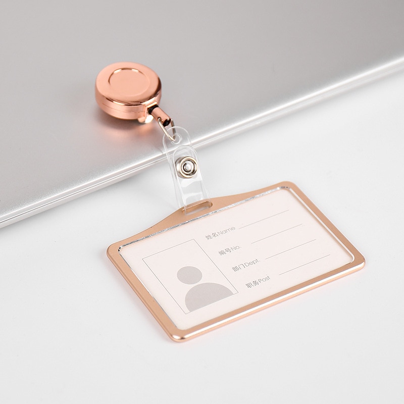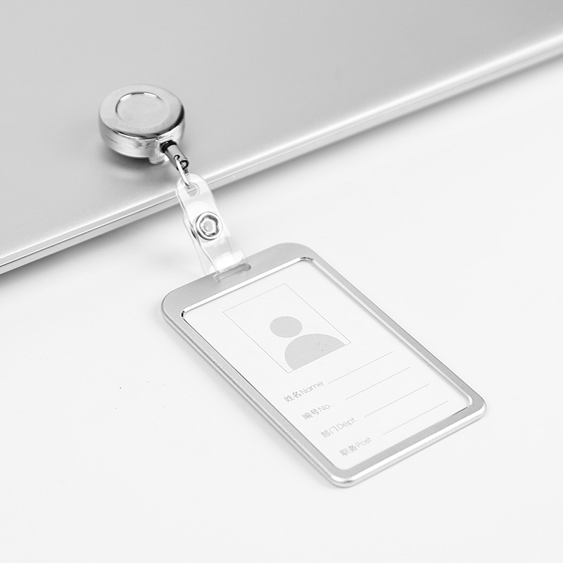 1 Pcs Aluminum Alloy Card Cover Case Bank Business Work Card Holder with ABS Retractable Badge Reel Credit ID Card Badge Bag