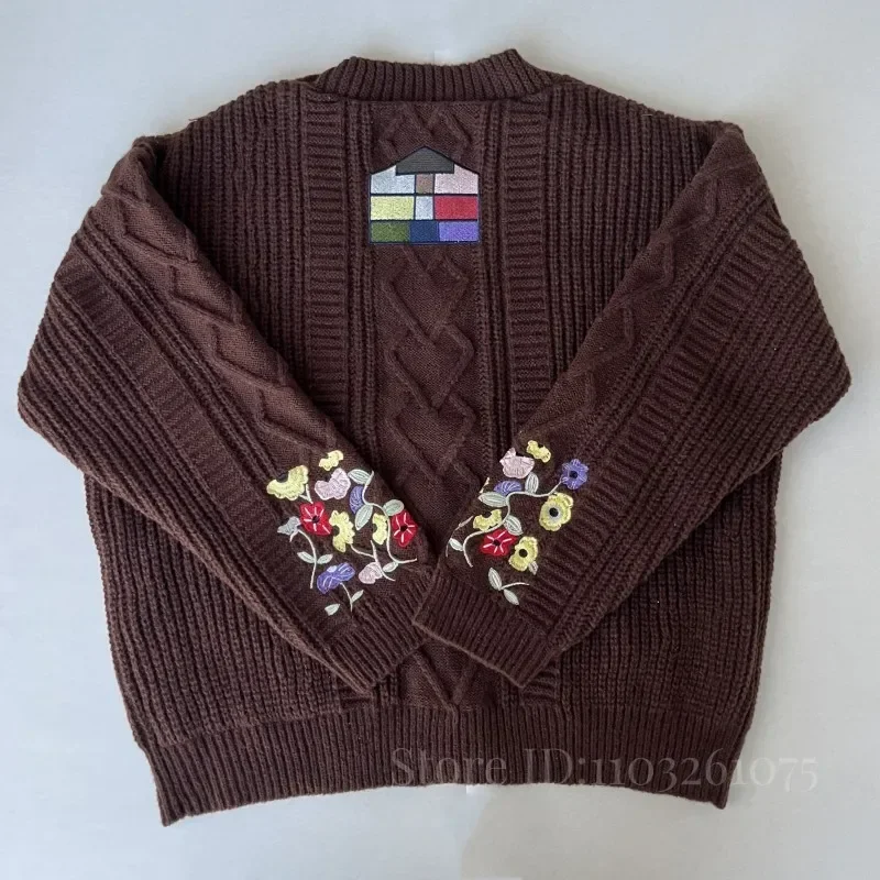 2025 Plus Size Eras Cardigan for Women – Autumn Winter Flower Embroidered Knitted Sweater | Y2K Vintage Fashion Cardigans Tops