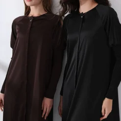 Elevate your autumn and winter wardrobe with this stunning satin maxi dress. Featuring an elegant button-down design, full smocking sleeves, and a flattering A-line silhouette, this dress is the epitome of luxury. Crafted with a blend of silk and polyester for a soft, smooth feel, it’s perfect for formal events, dinner parties, or sophisticated gatherings. The dress’s ankle-length design and off-the-shoulder style exude timeless elegance, making it an essential piece for any stylish woman’s closet.