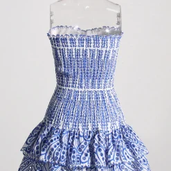 Cut-Out Layered Hem Sexy Mini Dress for Women – Strapless Off-Shoulder High Waist Dress