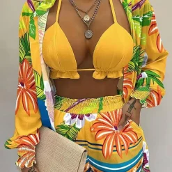 Crafted from a stretchy and breathable spandex-terylene blend, this set is designed to keep you comfortable and stylish all day long. Whether you’re lounging under the sun or taking a stroll along the shore, this set will have you glowing with confidence.
