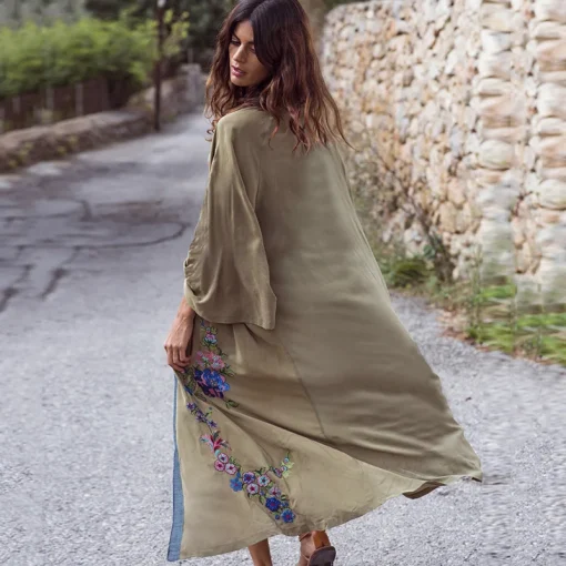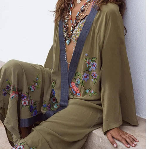 Embroidered Kimono Cover Up – Maxi Beach Cardigan 2024
