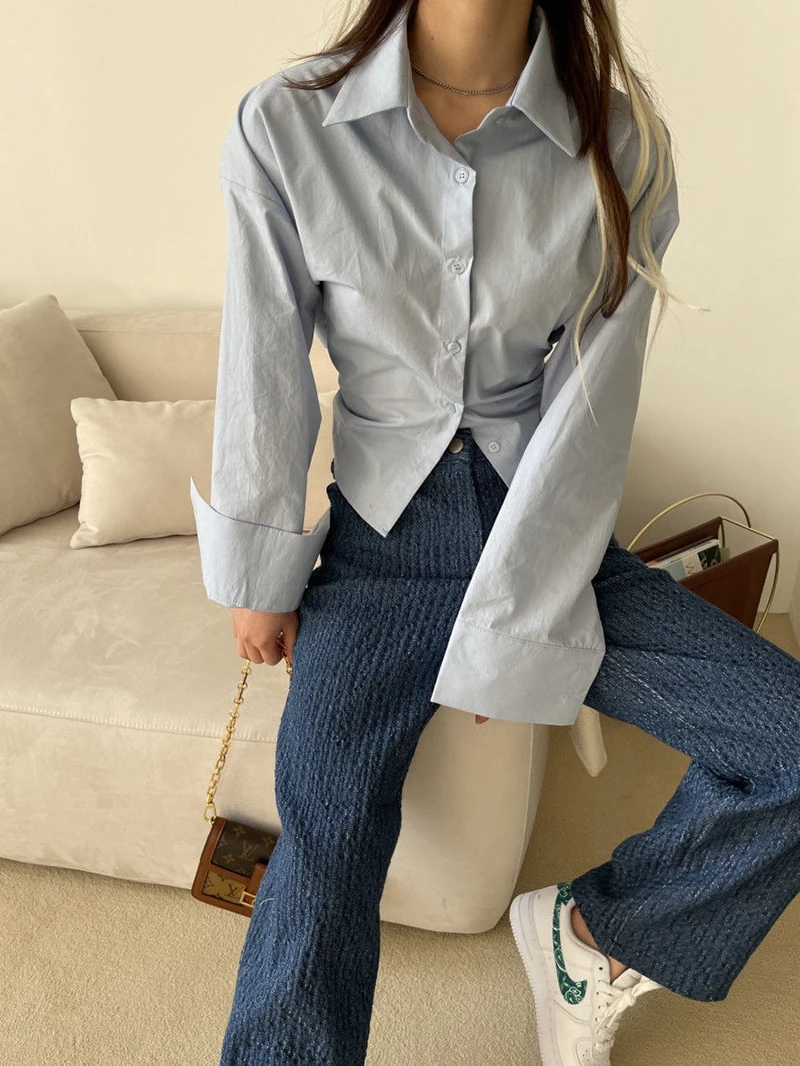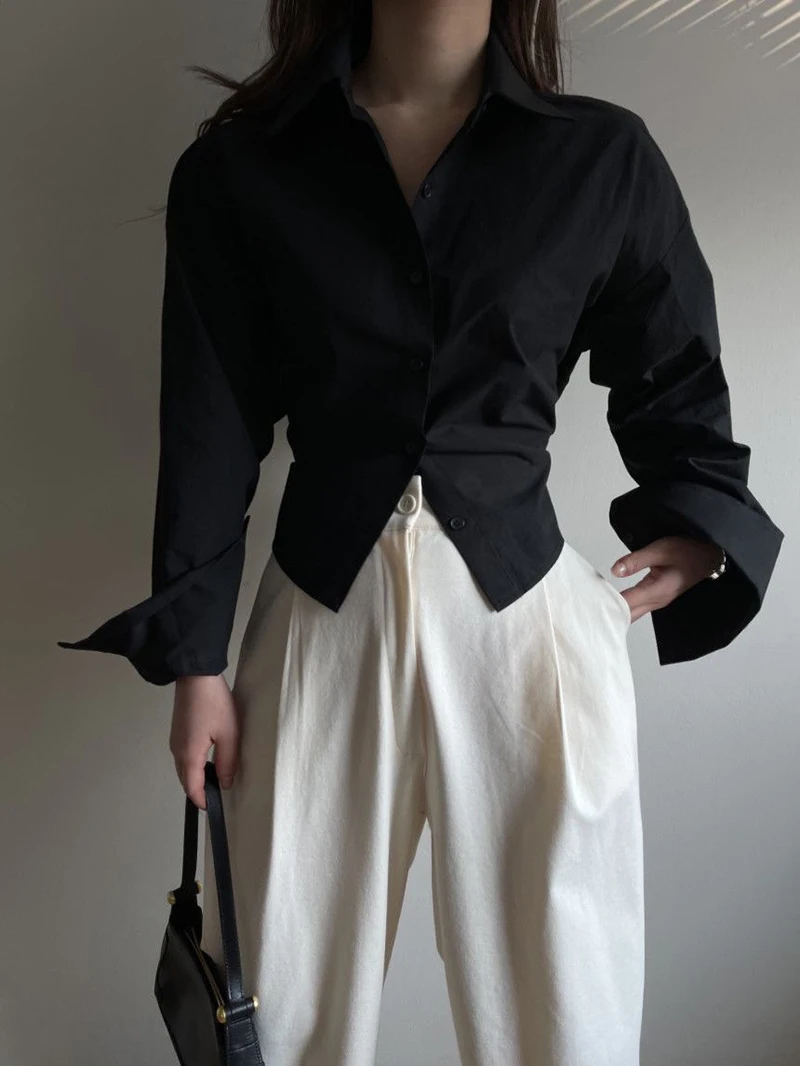 Elevate your wardrobe with the Gidyq Korean Bandage Shirt—a perfect balance of professional chic and modern allure. Whether for work or an evening out, this blouse will make you feel empowered and stylish.