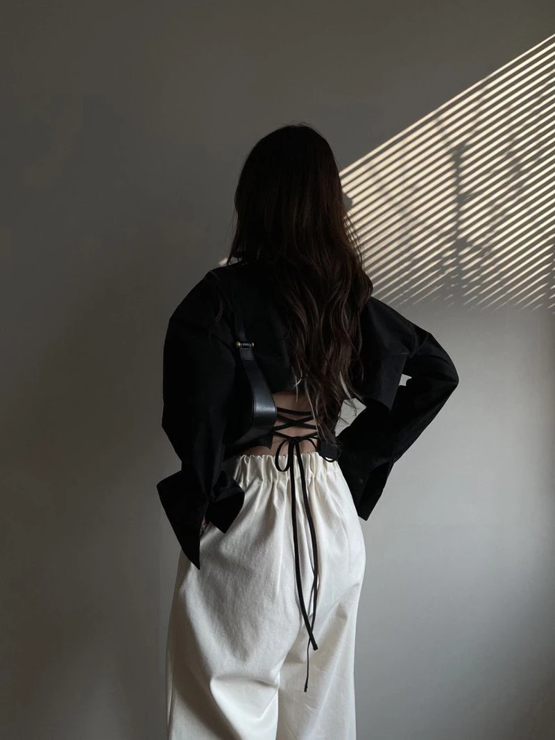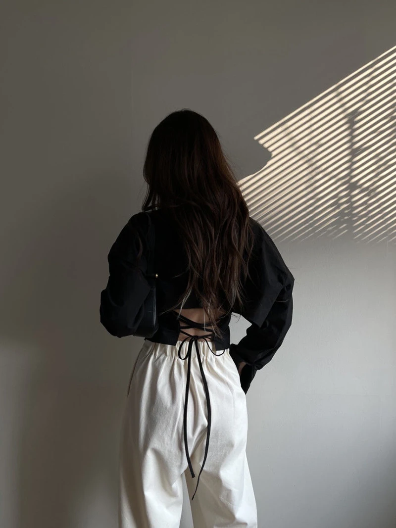 Gidyq Korean Bandage Shirt – Backless Sexy Blouse for Women