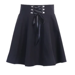 Gothic Black Skirt Japanese-Style Hipster Black JK Bubble Women’s Lace-up Back Zip Ins Girl’s Pleated Mini Skirt
