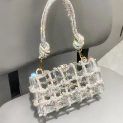 Handle Rhinestones Evening bag silver Crystal handmade Bags for Women Purses and Handbags Luxury Designer banquet bag