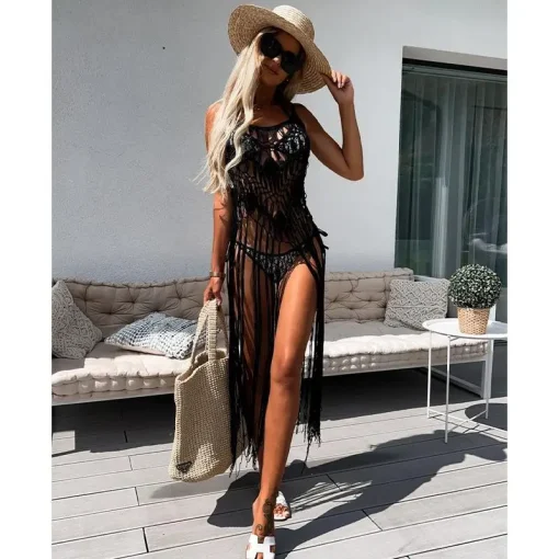 Hollow Out Tassel Beach Cover Up for Women 2024