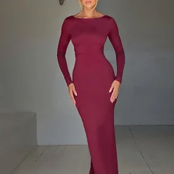 Hugcitar Spring Elegant Long Sleeve Backless Bodycon Maxi Dress – Sexy Pleated Evening Party Dress