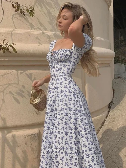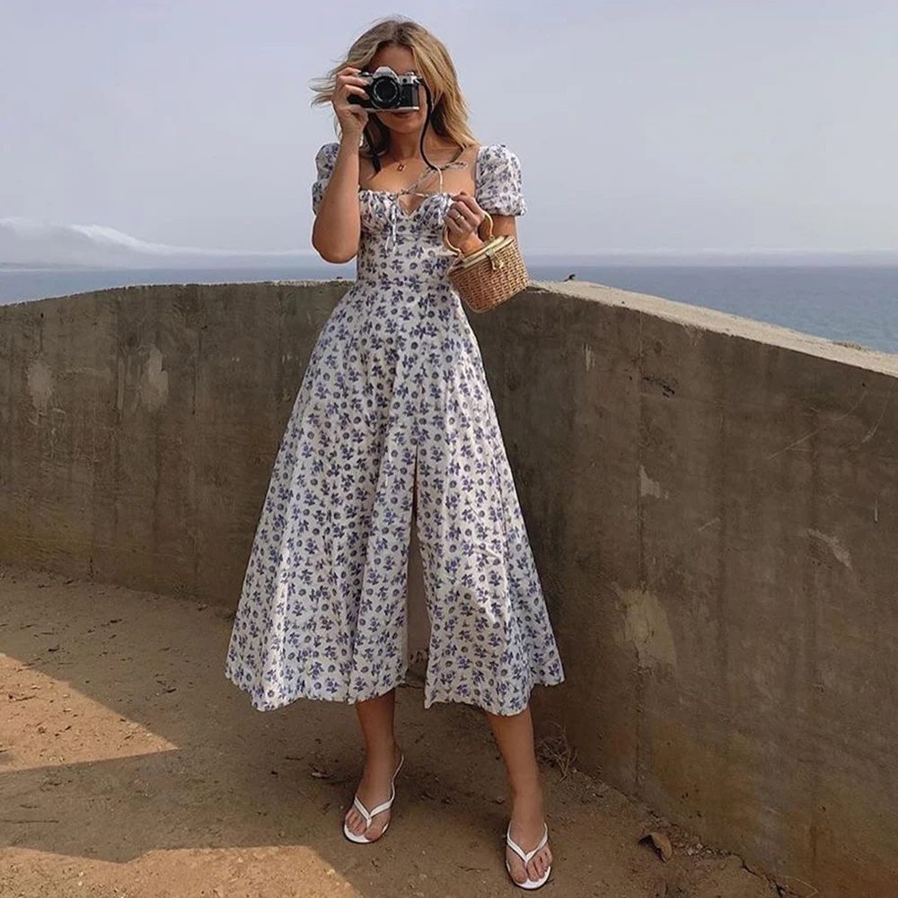 Elevate your summer wardrobe with this elegant, floral-printed dress, designed to bring out your best look for any occasion. Crafted with love and care, this puff sleeve dress combines timeless style with modern sophistication. Perfect for beach outings, casual gatherings, or any event where you want to stand out, this white midi dress is versatile and fashionable.