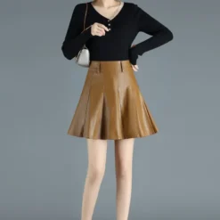 Woman Skirts Elegant Plus Size New Fashion Korean Style Genuine Real Leather Skirts High Waist Mini Skirt Womens Sexy Skirt